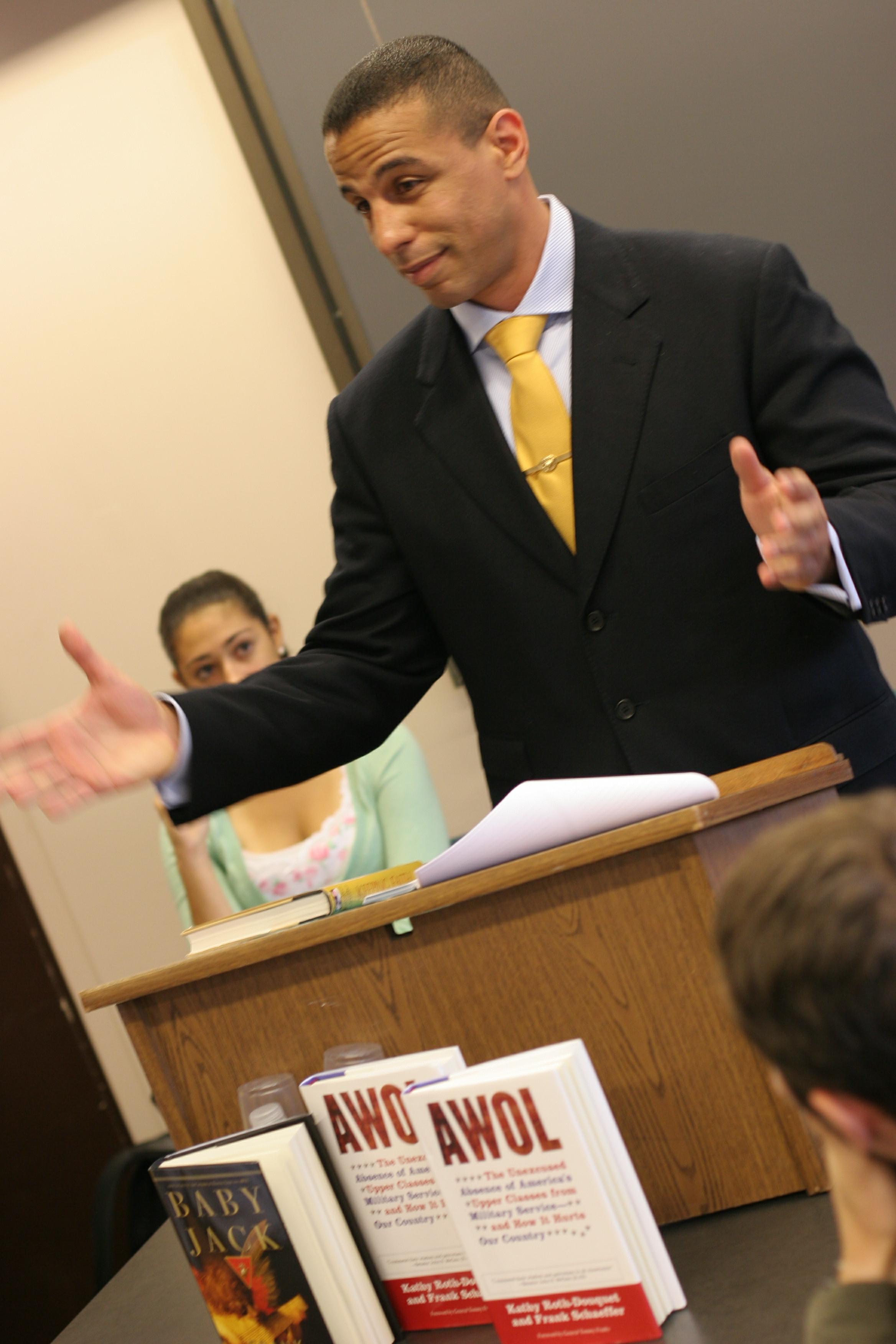 Matt Sanchez, representing the College Republicans, makes his presentation.