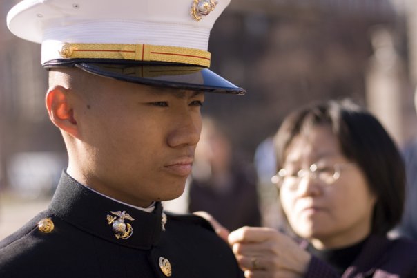 his parents pinned on his Second Lieutenant rank. The ceremony