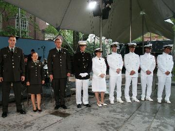 Receiving Army commissions were Second Lieutenants James T. Dowell, Rachel R. Sarvis, and Brandon M. Trama. Receiving Navy commissions were Second Lieutenant Peter H. Brooks (USMC), and Ensigns Catherine A. Cohn, William W. Craig, Joseph S. Payne, Andrew M. Salamon and Charles W. Schellhorn Jr.