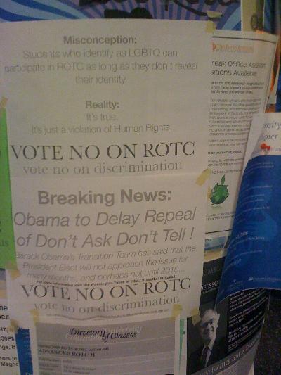 A second poster is entitled "Breaking News: Obama to Delay Repeal of Don't Ask Don't Tell!"