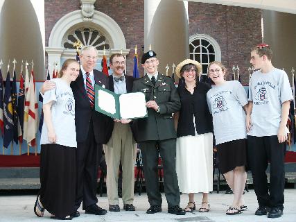 and 2 midshipmen were commissioned. LTC Brian L. Baker, Professor of Military Science at MIT told of the goal set by him and his colleagues Captain Robert D. Holland, Professor of Naval Science at MIT and COL Paul M. Rojko, Professor of Aerospace Studies at MIT to double the number of Harvard ROTC students from the current 50 to 100. Referring to President Summers he said "thank you for your unwavering leadership as we chart our course for tomorrow" and noted that Harvard has already "made great strides in advancing student access to ROTC". President Summers spoke of Harvard graduates serving in Iraq and said "we are free because we are strong" and that we must "support those who contribute to the strength that maintains our freedom". Secretary Roche reflected on being at Harvard during the strike in 1969 and said "There were times when I actually felt safer in the Tonkin Gulf than I did here". He related that he came to today's commissioning to "show solidarity with a great academic leader and commission a young friend". "Our officer corps needs graduates of Harvard to make it what it ought to be ... our fight is far from over" and said it was up to the officer corps to set the high ethical standards to which we hold our military. Colonel Jerome J. McDonald '54 USA (Ret.) noted that two thirds of his class served in the military. He related the experience in his career that made him really feel like an officer, describing to the new officers the first time in which "rank compelled me to act, even though I didn't feel like acting". Leaders of Advocates for Harvard ROTC and the Harvard ROTC Alumni Fund presented a special award to Emil Fleischaker '42 for his leadership of the alumni fund and support of Harvard's ROTC cadets and midshipmen. Receiving commissions were Army Second Lieutenants Raphael S. Cohen, James S. Foreman, Samuel K. King, Daniel R. Klinger, George M. J. Morris and William C. B. Taylor, Air Force Second Lieutenants Adam C. Aviles and Jamin B. Wilson, and Ensigns Stephen P. Bosco and Daniel R. Walker. Their assignments range from military intelligence to the military police corps. (click photos for more detail)